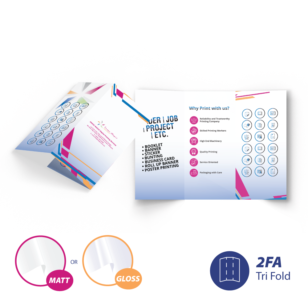 马来西亚覆膜宣传册印刷 – 高品质折叠单张,光面或哑面可选