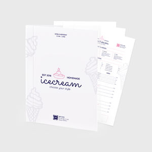 Menu kulit keras kami bagus untuk digunakan untuk hotel, pub dan bar. Kertas bercetak boleh disalut dengan salutan berkilat atau salutan matt. Balut di sekeliling papan serpai 1000gsm, menjadikan menu kulit keras tahan lama dan terasa menarik. Dengan 2 skru perak untuk memudahkan menukar kandungan menu. Semua kandungan juga disertakan dengan laminasi berkilat atau matt. Pemilihan halaman kandungan untuk menu kami ialah 12 halaman atau 16 halaman. Dengan menggunakan templat kami, anda boleh membuat menu kulit keras anda sendiri dengan mudah.