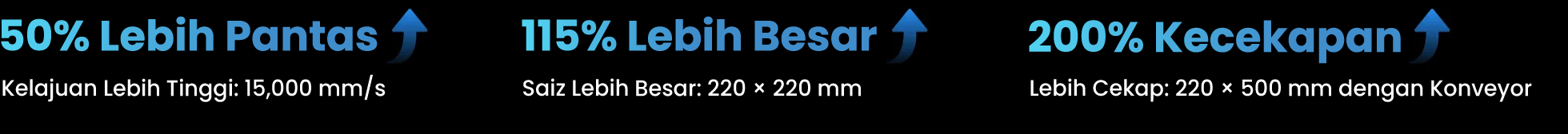 Dengan konveyor, saiz permukaan kerja diperluaskan kepada 220 × 500 mm, sesuai untuk mengendalikan pesanan pukal segera secara sendiri.